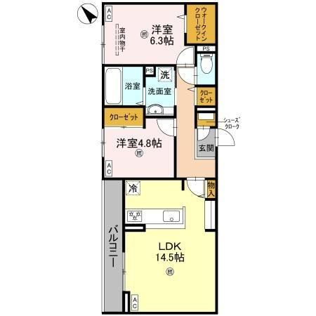 | 間取り詳細 | LDK14.5畳、洋6.3畳、洋4.8畳 | 保証会社 | - |